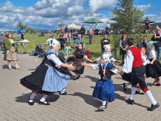 Unsere Odenwälder Tracht hatten wir dabei und haben Mittsommerveranstaltungen gemeinsam mit unseren schwedischen Freunden bereichert.